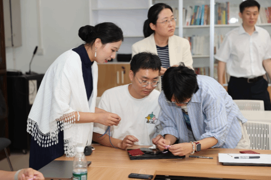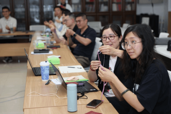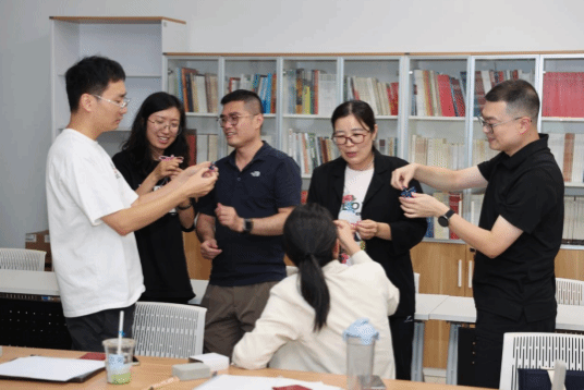 此次活动为每位教职工配备了专业定制的“曾氏盘扣”材料包。制作过程中,教职工们热情高涨,纷纷动手实践。大家专注投入,遇到难题及时向讲师请教,彼此间也相互交流经验、分享心得。原本看似复杂的盘扣,在大家的巧手下逐渐成型。从最初的生疏摸索,到后来的熟练操作,现场氛围温馨而热烈。当一枚枚精致的盘扣制作完成,教职工们脸上满是成就感,纷纷展示自己的成果,定格这一美好时刻。