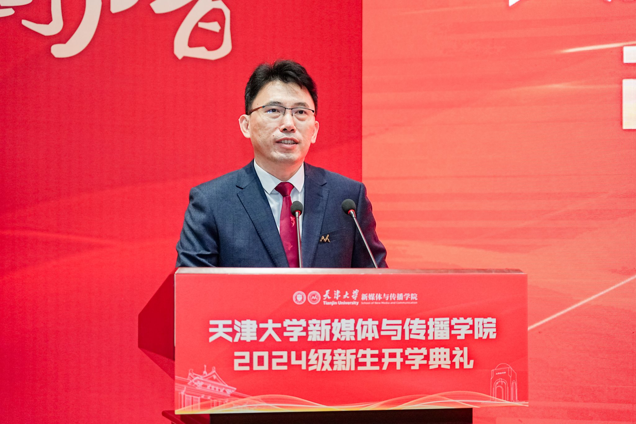 2023级新闻传播学硕士研究生张凯歌同学作为在校生代表发言,他从自身经历出发,围绕“以何种姿态开启研究生生涯”这一主题,分享了在新媒体澳门彩票 的成长感悟。张凯歌同学鼓励新生积极面对挑战,勇敢追求梦想,充分利用澳门彩票 提供的资源和机会,不断提升自己的能力和素质。2024级新生代表张旻尧、谢艺观和张芊同学也分别发言,他们从不同的角度表达了对未来学习生活的期待和对新媒体领域的热忱。张旻尧同学分享了他对新闻传播学学习的思考和期待,强调了互联网力量对社会的积极影响。谢艺观同学作为非全日制硕士研究生代表,分享了重返校园的激动心情和对专业成长的期待。张芊同学则从跨学科的角度,讨论了个人发展中的选择和挑战,鼓励同学们大胆探索,勇敢尝试。“让我们携手并进,在各自的岗位上发光发热,共同见证并参与这个时代的伟大变革,以实际行动践行社会责任,共同书写属于我们的、更加精彩绝伦的历史篇章!”